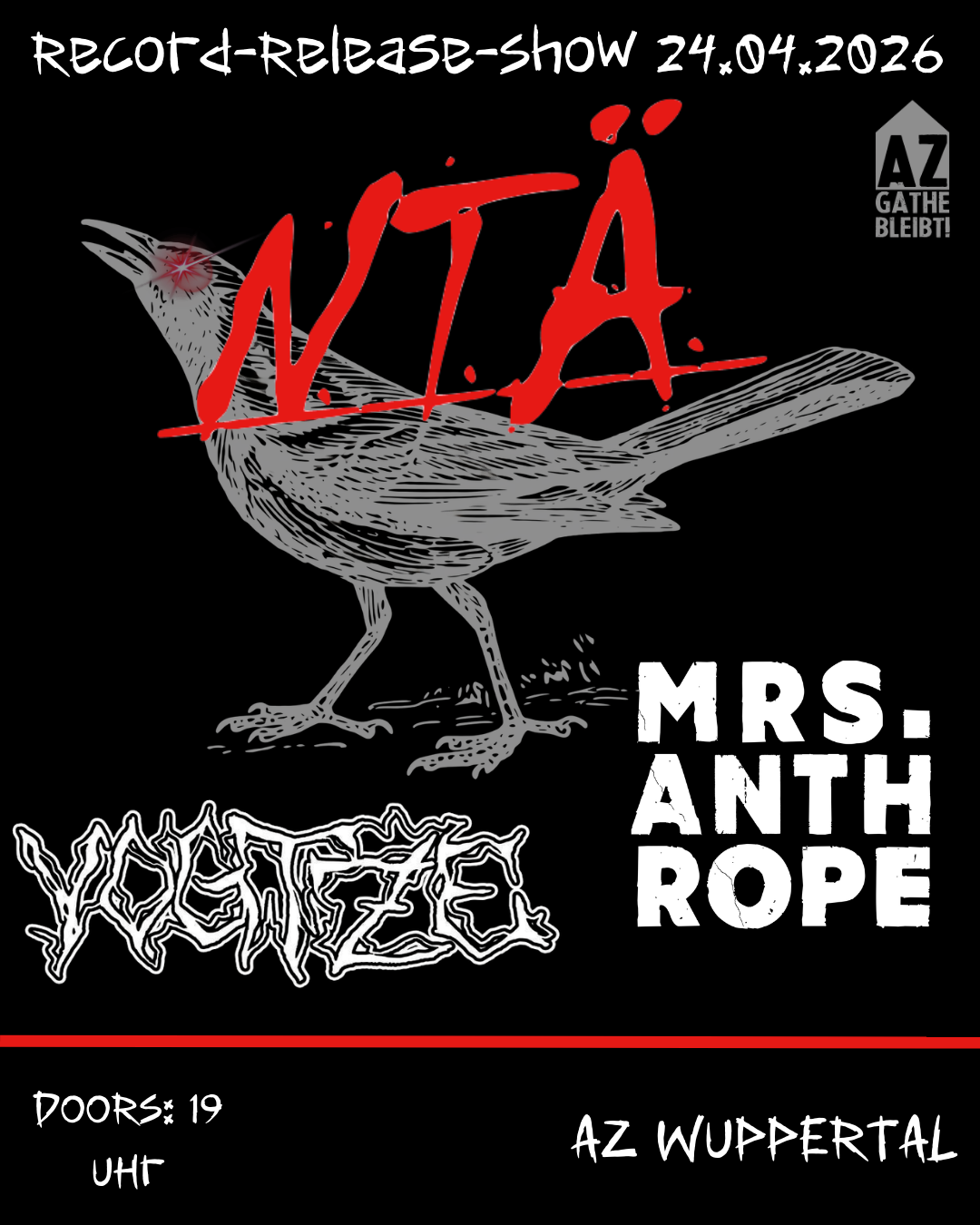 - 19:00, 24. April 2026 – N.T.Ä Record-Release-Show (AZ Wuppertal)
