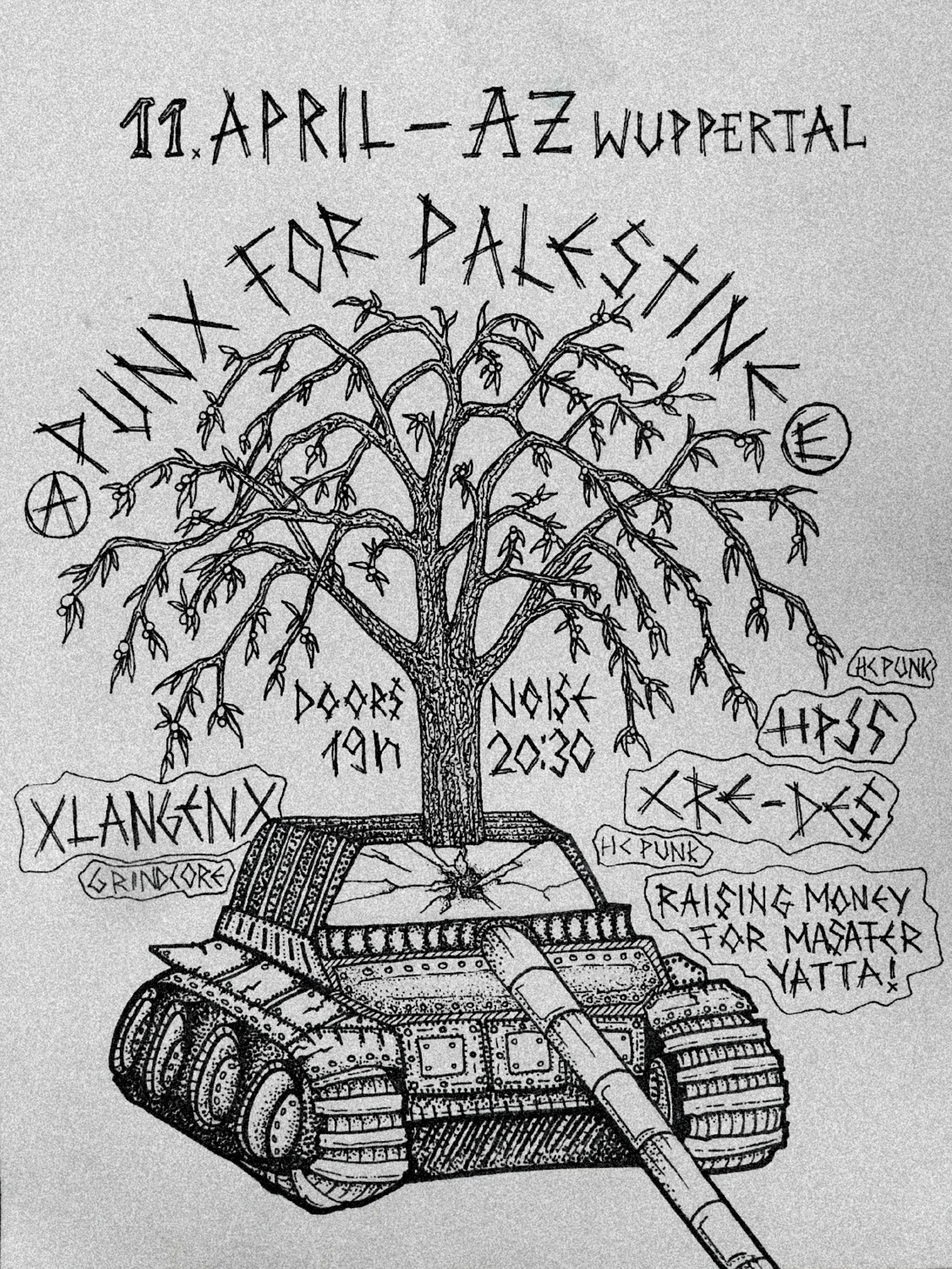 International Weekend in Solidarity with Masafa Yatta (09. - 11.04.26) Konzert im AZ Wuppertal mit: HPSS (HC-Punk // Mülheim) XLangenX (Powerviolence // Pott) Cre-Des (HC-Punk // Hannover) Doors: 19:00